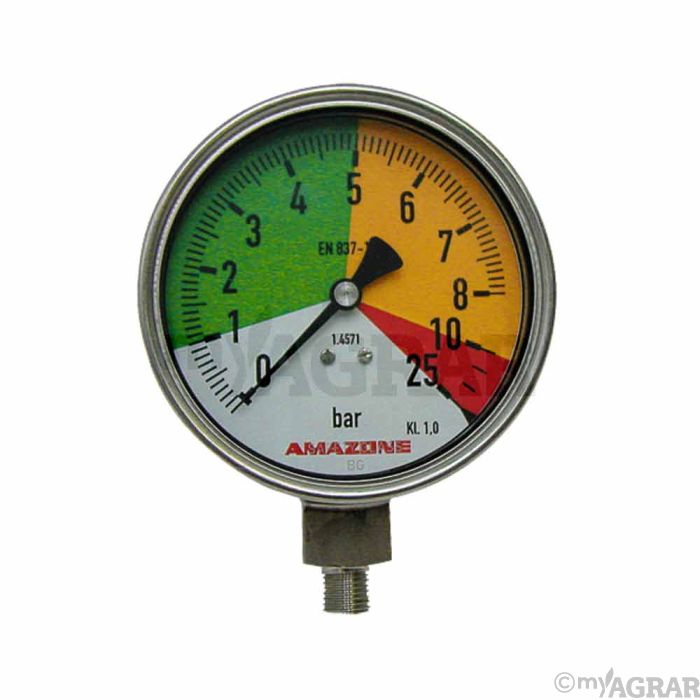Ein Manometer (0-25 bar, Ø = 100, Anschluss 1/4") von Amazone.