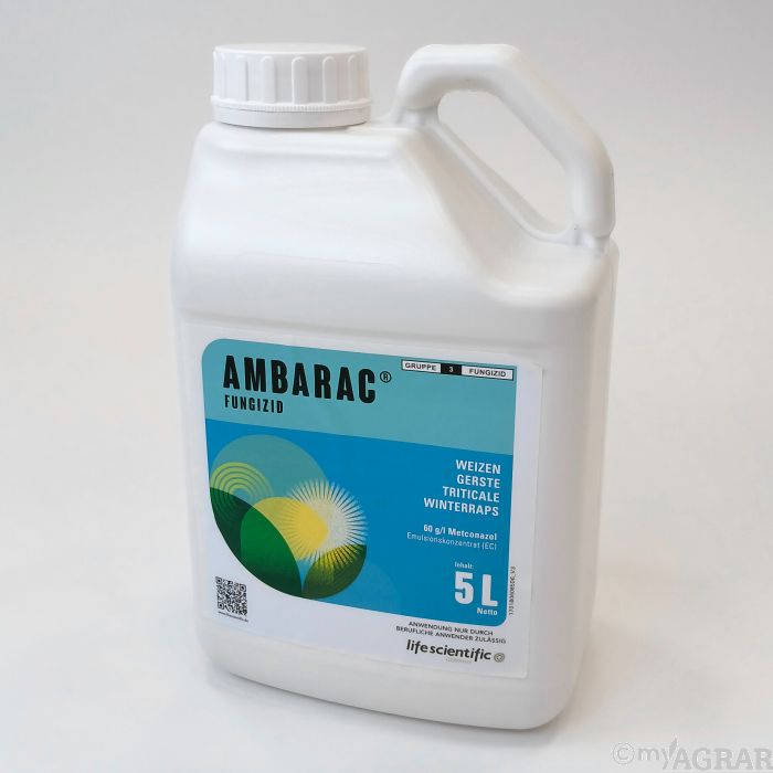 Ambarac ist ein systemisches Fungizid für den Einsatz gegen Pilzkrankheiten in Getreide und Raps. Der Wirkstoff Metconazol dringt schnell in die Pflanze ein und wird in der kompletten Pflanze mit dem Saftstrom verteilt. Das schnelle Eindringen in die Pflanzeverhindert eine Auswaschung durch nachfolgenden Regen. Das Produkt wirkt protektiv vor einsetzendem Befall und vorhandene Infektionen breiten sich nicht weiter aus. In Raps wird zudem das Längenwachstum gehemmt, was einen kompakteren Wuchs und eine erhöhte Standfestigkeit zur Folge hat (Verminderung von Lager).