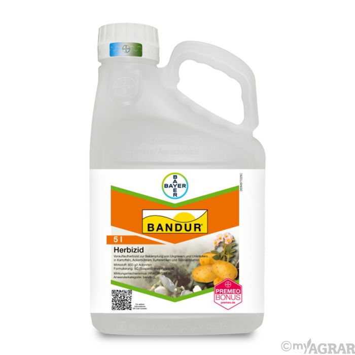 Bandur ist ein Vorauflaufherbizid gegen Ungräser und Unkräuter in Kartoffeln, Ackerbohnen, Futtererbsen, Sonnenblumen und verschiedenen Gemüsekulturen. Die Wirkstoffaufnahme erfolgt vornehmlich über den Sprossteil der Keimpflanzen. Sie werden chlorotisch, bleiben im Wachstum zurück und sterben schließlich ab.