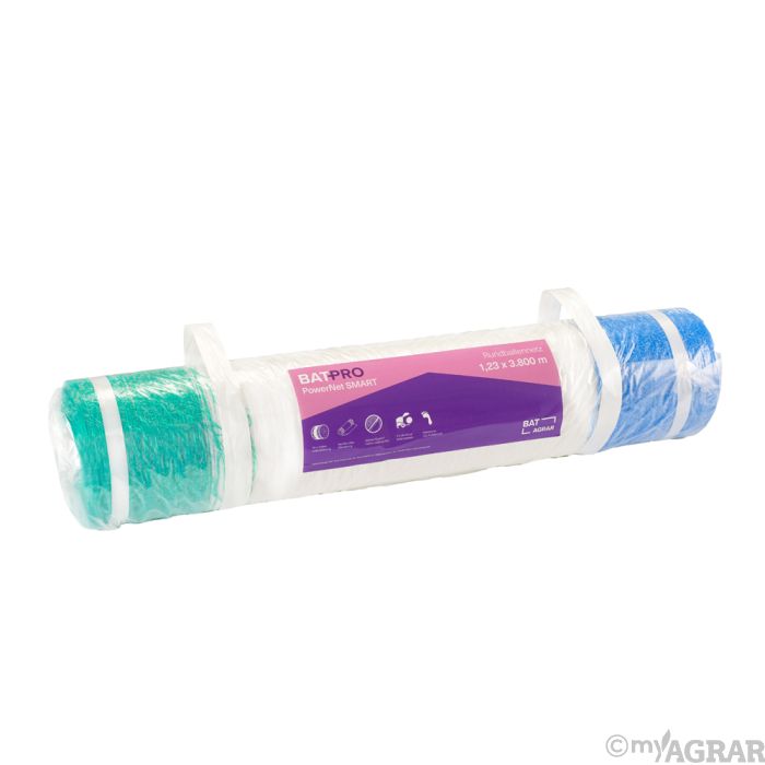 Das Rundballennetz BAT Pro PowerNet SMART weiß wird mit neuester Technologie und weiterentwickelten Rohmaterialien produziert. Dadurch wird ein ressourcenschonenderes Produkt mit leichterer Handhabung erzielt, bei gleichzeitiger Beibehaltung unserer bewährten Qualität. Die Seitenmarkierung und Tragegriffe stellen das richtige und einfache Einlegen des Netzes in die Presse sicher.