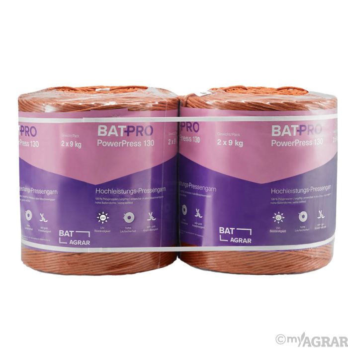 Das Pressengarn BAT Pro PowerPress 130 rostbraun ist ein UV-beständiges Pressengarn mit hoher Laufsicherheit. Es bietet eine hohe Ballendichte, verlässliche Knotenbildung und kann auf allen Maschinentypen zum Einsatz kommen.