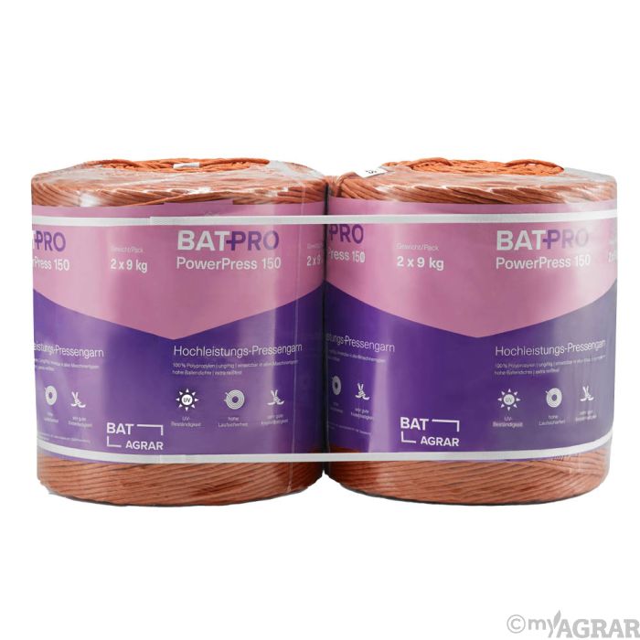 Das Pressengarn BAT Pro PowerPress 150 rostbraun ist ein UV-beständiges Pressengarn mit hoher Laufsicherheit. Es bietet eine hohe Ballendichte, verlässliche Knotenbildung und kann auf allen Maschinentypen zum Einsatz kommen.