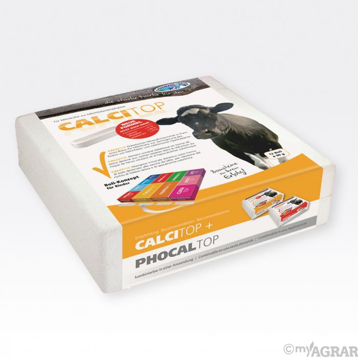 CALCITOP Calcium Bolus ist ein diätisches Mineralfutter in Form eines Bolus für Kühe, welches zur Verringerung der Gefahr von Milchfieber beiträgt. Der Bolus enthält zwei hochdosierte Calciumquellen, welche sich unterschiedlich schnell auflösen und so länger anhaltend den Calciumspiegel kontinuierlich aufrechterhalten. Gleichzeitig wird zudem das Tier mit essentiellem Phosphor versorgt. Somit stellt der Bolus eine sichere und einzeltierbezogene Lösung zur Verbesserung der Calcium- und Phosphorversorgung dar.