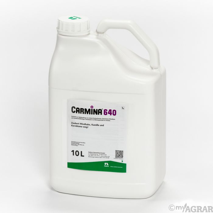 Carmina 640 ist ein Herbizid gegen Windhalm, Einjährige Rispe und zweikeimblättrige Unkräuter, insbesondere Kornblume und Kamille, in Wintergetreide im Herbst. Das Herbizid hat ein breites Einsatzfenster um BBCH-Stadien 10-29 und wirkt sowohl über den Boden als auch über das Blatt.