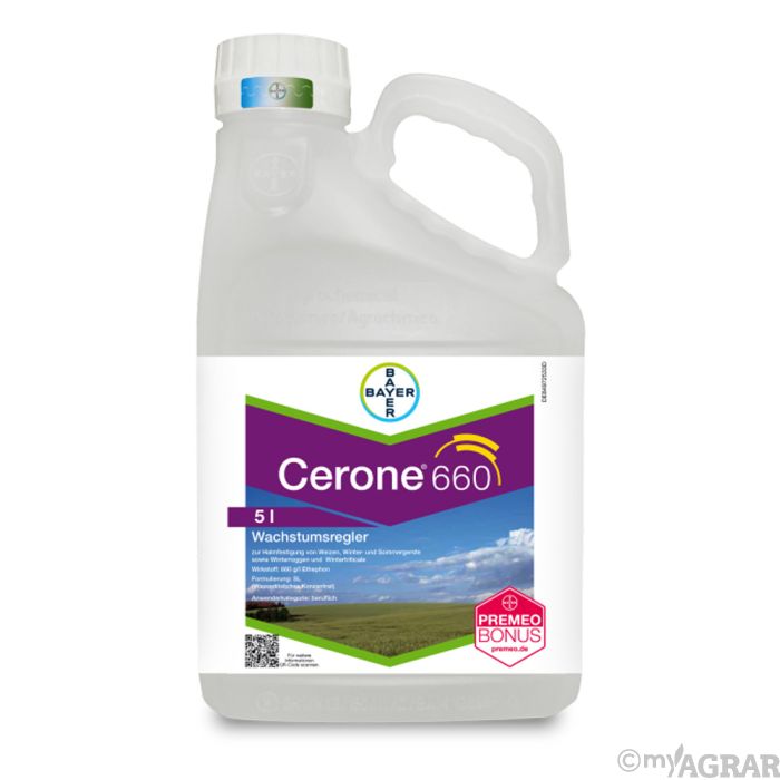 Cerone 660 ist ein Wachstumsregler zur Halmfestigung von Weizen, Winter- und Sommergerste sowie Winterroggen und Wintertriticale. Durch die gute Einkürzleistung der Halme und die Verstärkung der Halmwand sorgt Cerone 660 für eine Erhöhung der Standfestigkeit. Eine gute Wirkung wird vor allem bei höheren Temperaturen ab 15 °C erreicht.