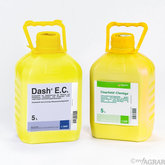 Clearfield-Clentiga besteht aus 5 l Clearfield-Clentiga und 5 l Dash (Formulierungshilfsstoff).