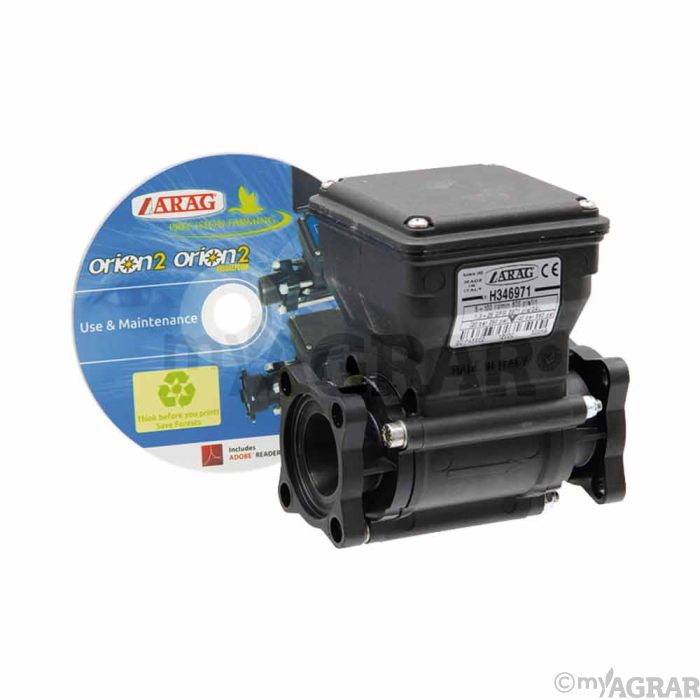 Ein Elektromagnetischer Durchflussmesser (ORION 2, Innen-Ø 14 mm, für Ventil Serie 863 und 463) von ARAG.
