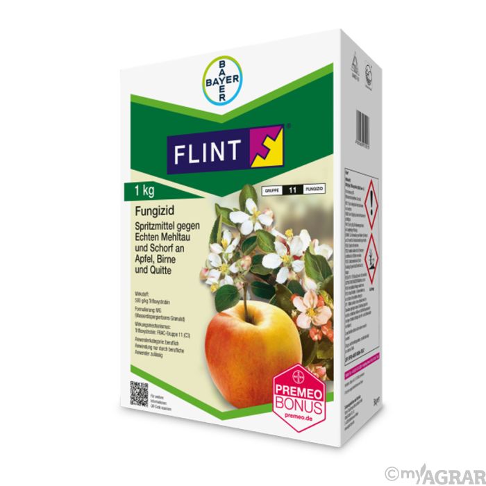 Flint ist ein Fungizid zur Bekämpfung von pilzlichen Krankheiten in Hopfen, an Kern-, Stein-, und Beerenobst, im Wein-, Gemüse- und im Zierpflanzenbau. Die Wirkung ist vorbeugend (protektiv) und verhindert bereits die Infektion der Pflanze sowie die weitere Ausbreitung.