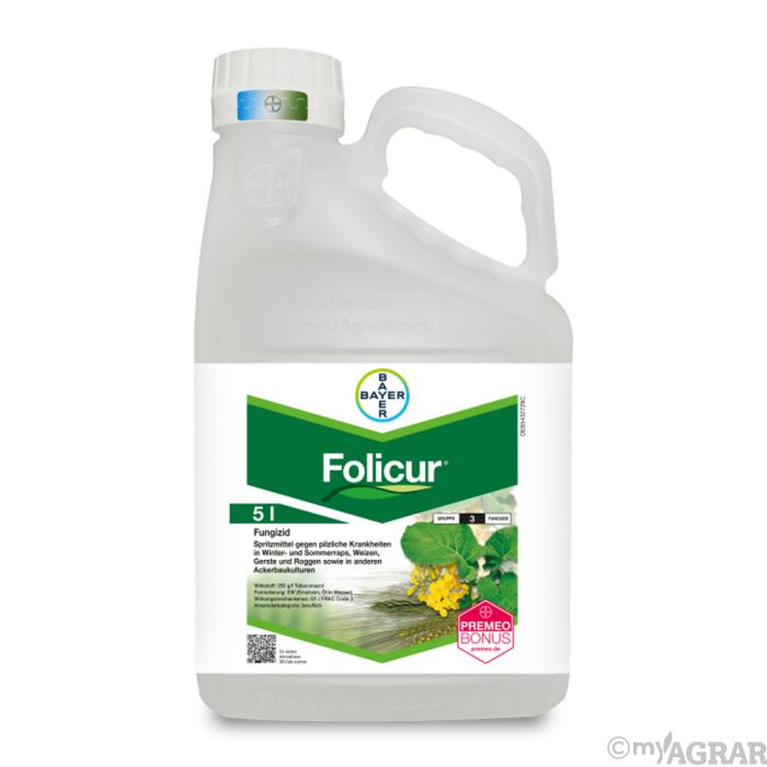Folicur ist ein systemisches Fungizid zur Bekämpfung von pilzlichen Krankheiten in Raps, Getreide und anderen Ackerbaukulturen. Es wirkt sowohl vorbeugend (protektiv) als auch befallsstoppend (kurativ bzw. eradikativ) mit Langzeitschutz.