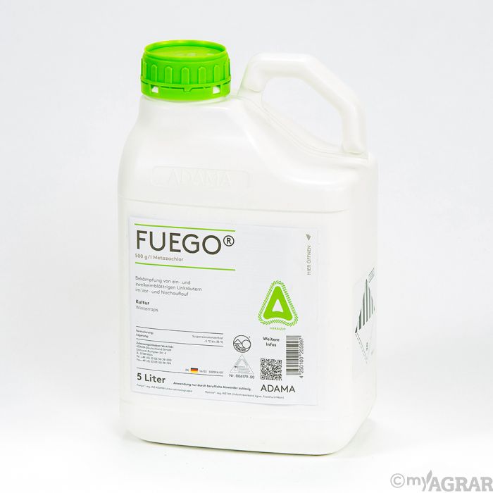 Fuego ist ein Herbizid gegen Unkräuter und Ungräser in Winterraps. Der Wirkstoff wird über die Wurzeln und über das Blatt aufgenommen. Die Unkräuter werden besonders gut im Keimblatt- bzw. im ersten Laubblatt-Stadium erfasst. Ein guter Bekämpfungserfolg wird dann erzielt, wenn sich der Wirkstoff bei ausreichender Feuchtigkeit im Boden lösen und verteilen kann und somit eine Wirkstoffaufnahme zusätzlich über das Wurzelsystem der Unkräuter und Ungräser möglich ist.