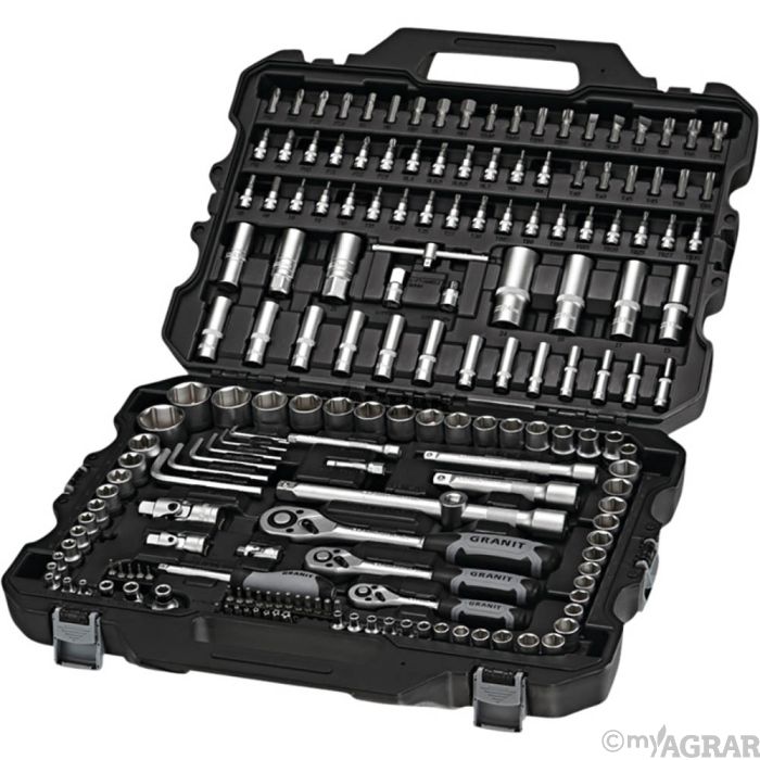 1/4"" Vierkant-Schraubendreher, 150 mm 1/4"", 3/8"", 1/2"" Umschaltknarre, 72 Zahn 1/4"" Sechskant-Stecknuss, 4/4,5/5/5,5/6/7/8/9/10/11/12/13/14 mm 1/4"" Sechskant-Stecknuss, lang, 4/5/6/7/8/9/10 mm 1/4"" Bit-Stecknuss Innensechskant 3/4/5/6 mm 1/4"" Bit-Stecknuss Schlitz, 4/5,5/6,5/7 mm 1/4"" Bit-Stecknuss, PH1/PH2/PH3 1/4"" Bit-Stecknuss, PZ1/PZ2/PZ3 1/4"" Bit-Stecknuss TX, T8/T9/T10/T15/T20/T25/T27/T30 1/4"" Bit-Stecknuss TX mit Stirnlochbohrung, TB8/TB9/TB10/T15/TB20/TB25/TB27/TB30 1/4"" TX-E-Stecknuss, E4/E5/E6/E7/E8 1/4"" Bit-Adapter-Stecknuss, mit Spannring 1/4"" T-Griff mit Gleitstück, 110 mm 3/8"" Sechskant-Stecknuss, 10/11/12/13/14/15/16/17/18/19 mm 3/8"" Sechskant-Stecknuss, lang, 10/11/12/13/14/15 mm 3/8"" TX-E-Stecknuss, E10/E11/E12/E14/E16/E18 3/8"" Bit-Adapter-Stecknuss, 3/8"" x 5/16"", 28 mm 3/8"" Zündkerzen-Stecknuss, 18 mm 1/2"" Sechskant-Stecknuss, 10/11/12/13/14/15/16/17/18/19/20/21/22/24/27/30/32 mm 1/2"" Sechskant-Stecknuss, lang, 13/17/19/24 mm 1/2"" Zündkerzen-Stecknuss, 16 mm 1/2"" TX-E-Stecknuss, E20/E24 1/2"" Bit-Adapter-Stecknuss, 1/2"" x 5/16"", 38 mm 1/2"" Zündkerzen-Stecknuss, 21 mm 1/2"" Verlängerung, 125/250 mm 1/4"" Vergrößerungsadapter, 1/4""F x 3/8""M 3/8"" Vergrößerungsadapter, 3/8""F x 1/2""M 3/8"" Gleitstück/ Vergrößerungsadapter 1/4"" Verlängerung, 50/100 mm 3/8"" Verlängerung mit Antriebs-Sechskant, 150 mm 1/4"", 3/8"", 1/2"" Kardangelenk 1/4"" Bit TX, 25 mm, T5/T6/T7/T8/T9/2xT10/2xT15/2xT20/2xT25/2xT27/2xT30 1/4"" Bit für Fünfstern, Bohrung, TS10/TS15/TS20/TS25/TS27/TS30/TS40/TS45 5/16"" Bit PZ, 30 mm, PZ3/PZ4 5/16"" Bit PH, 30 mm, PH3/PH4 5/16"" Bit Innensechskant, 7/8/10/12/14 mm 5/16"" Bit TX, Bohrung, 30 mm, TB40/TB45/TB50/TB55 5/16"" Bit Schlitz, 8/10/12 mm 5/16"" Bit TX, 30 mm, 2xT40/2xT45/2xT50/T55/T60/70 Innensechskant-Winkelstiftschlüssel, kurz, 1,5/2/2,5/3/4/5/6/8 mm |