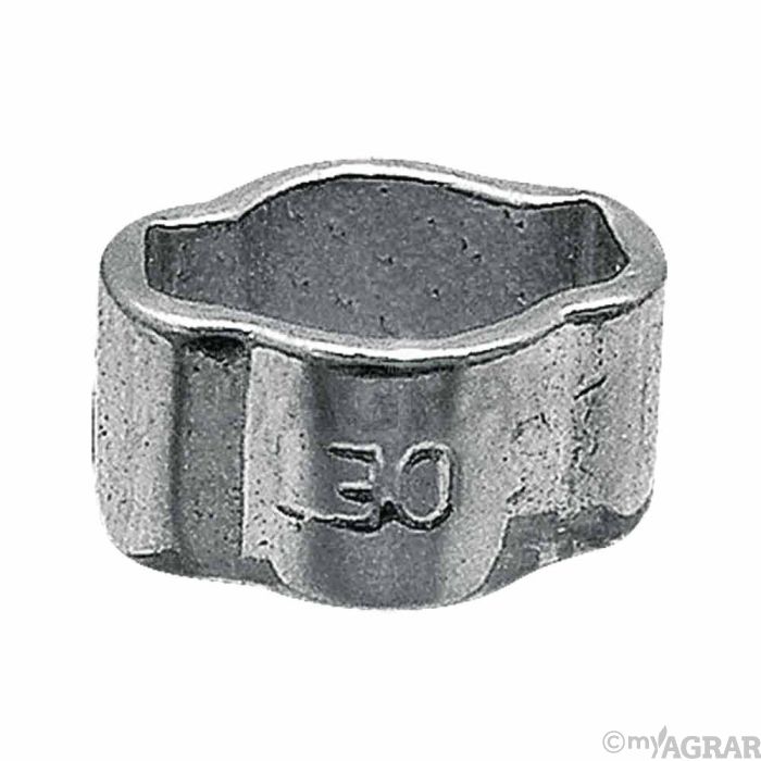 Eine Schlauchklemme von GRANIT. Aus hochglanzverzinktem Stahl