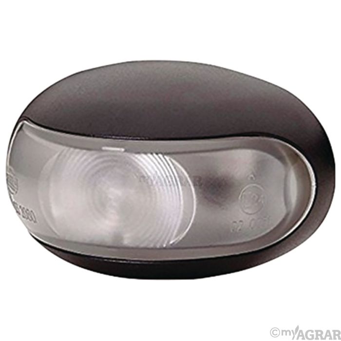 für vorderen Anbau, LED-Technik mit 2 LEDs, weißes Licht, Multivolt 10 V bis 33 V, schwarzes Gehäuse, 500 mm Anschlusskabel. Zugelassen für Fahrzeuge nach GGVS/ADR, Prüfzeichen: E4 7575