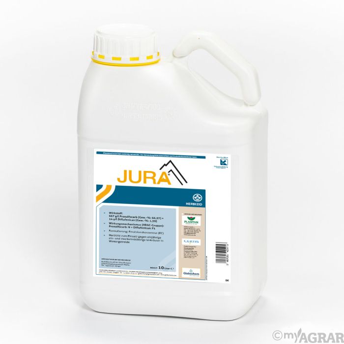 Jura ist ein Herbizid gegen Einjähriges Rispengras, Gemeinen Windhalm, Vogelsternmiere und Persischen Ehrenpreis in Wintergerste, Winterweichweizen, Winterroggen, Wintertriticale und Freiland im Vor- und Nachauflaufverfahren. Der Wirkstoff Diflufenican wird hauptsächlich über den Boden aufgenommen besitzt aber zusätzlich noch eine Kontaktwirkung. Der Wirkstoff Prosulfocarb wird hauptsächlich über das Hypokotyl und in geringerem Maße über die Wurzel aufgenommen.