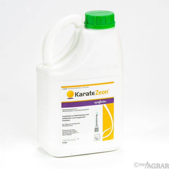 Karate Zeon ist ein Insektizid zur Bekämpfung von beißenden und saugenden Insekten in Getreide (Weizen, Gerste, Roggen, Triticale, Hafer), Raps, Kartoffeln, Mais, Futter- und Zuckerrüben, Gemüse, Obst und Weinreben. Das Produkt entwickelt eine starke Fraß- und Kontaktwirkung, die sehr schnell nach der Anwendung einsetzt. Auf eine gründliche Benetzung befallener Pflanzenteile ist unbedingt zu achten, da der Wirkstoff nicht systemisch in der Pflanze verlagert wird. Der Wirkstoff ist im Sonnenlicht stabil und besitzt deshalb auf pflanzlichen Oberflächen eine gute Dauerwirkung.