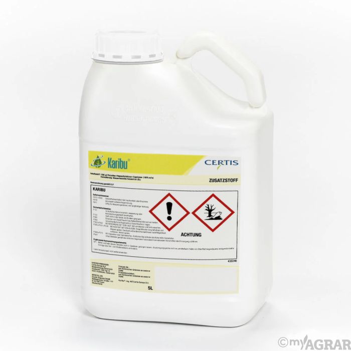 Karibu ist ein Additiv zur Verbesserung der Benetzung, Anhaftung und dem Eindringen von Pflanzenschutzmitteln. Mit der Zugabe von Karibu wird die Oberflächenspannung der Spritzbrühe reduziert. Dadurch wird ein lückenloser Spritzbelag und eine stärkere Durchdringung des Bestandes gefördert.