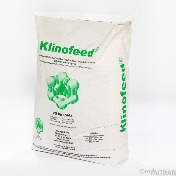 Klinofeed ist ein Mineral sedimentären Ursprungs, welches durch eine spezielle Aufbereitung außerordentliche Bindungseigenschaften gewährleistet und nun seit mehr als 25 Jahren erfolgreich zur Verbesserung von technologischen Eigenschaften in der Mischfutterindustrie und auf landwirtschaftlichen Betrieben eingesetzt wird. Durch seine feine Kristallgitterstruktur bietet Klinofeed eine große Oberfläche, an die sich verschiedene Ionen außerordentlich fest binden können.