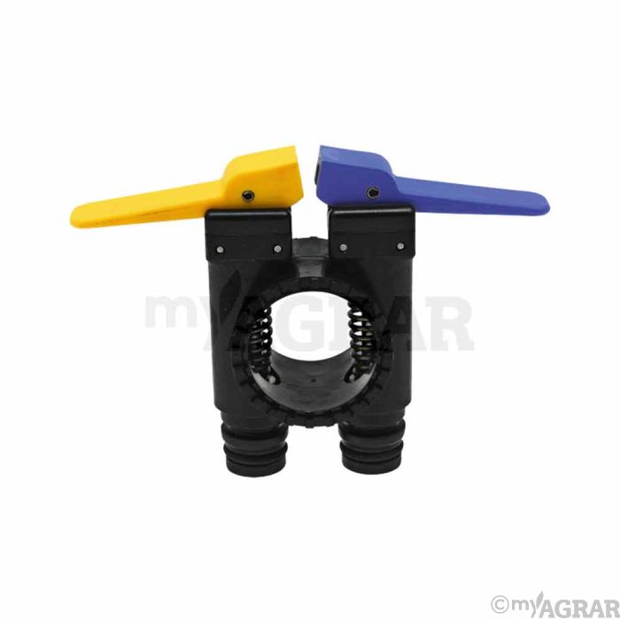 Ein Doppelhahn (gelb/blau) von Kverneland.
