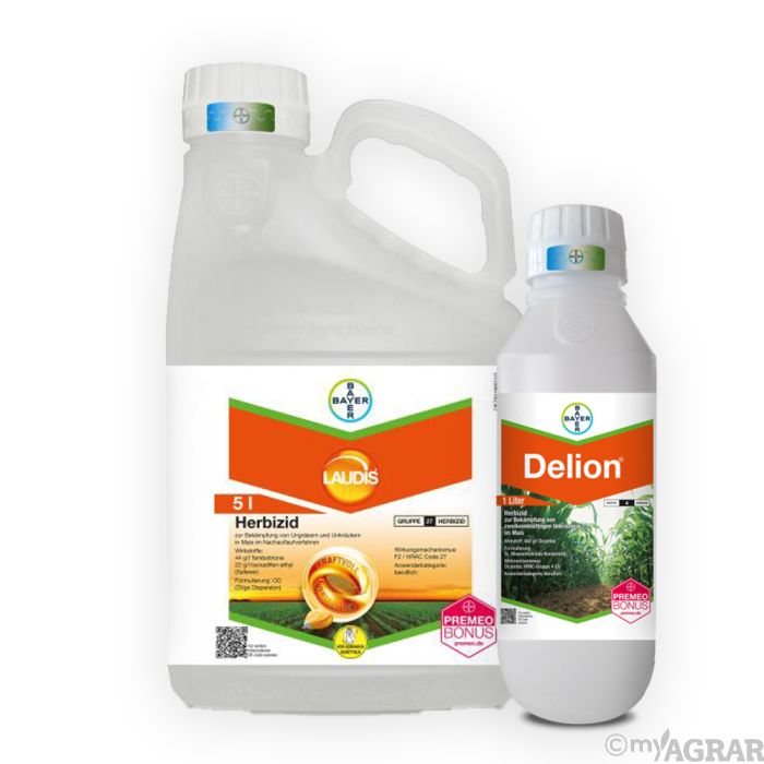 Der Laudis Plus Pack besteht aus den Produkten Laudis und Delion und ist eine Herbizidkombination. Der in dieser Kombination enthaltene Wirkstoff Tembotrione sorgt für eine zuverlässige blattaktive Wirkung gegen die meisten aufgelaufenen Ungräser und Unkräuter, wobei die Maispflanzen sehr gut vertragen werden. Durch den Zusatz von Dicamba wird die Wirkung gegen zahlreiche Unkräuter weiter verstärkt und ergänzt. Somit bietet die Kombination eine starke und zugleich verträgliche Blattwirkung.