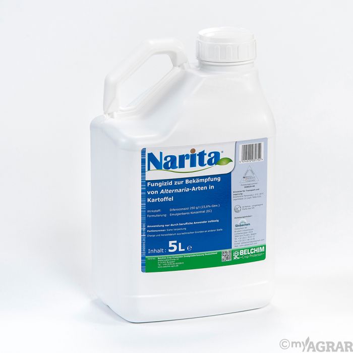 Narita ist ein systemisch wirkendes Fungizid zur Bekämpfung von Alternaria Arten in Kartoffeln. Der Wirkstoff wird schnell von den grünen Pflanzenteilen aufgenommen und translaminar im Gewebe verteilt.