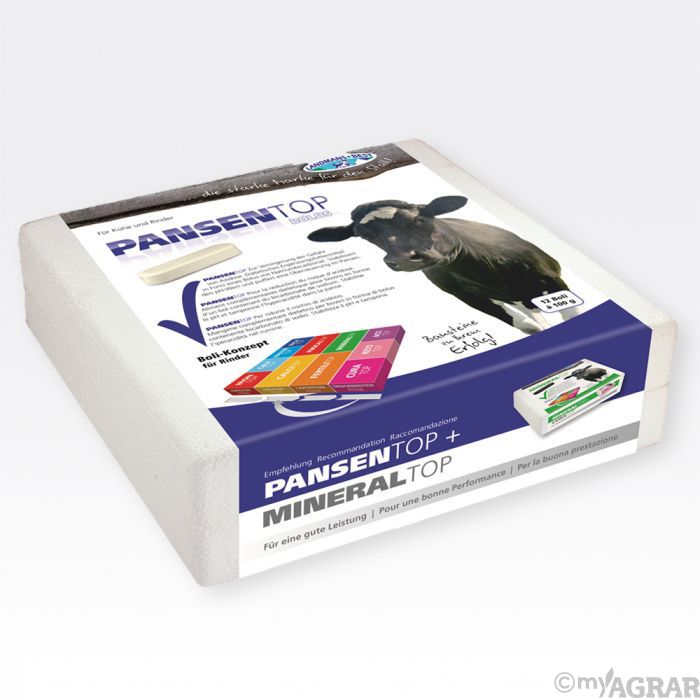 PANSENTOP Rinder Bolus ist ein diätisches Ergänzungsfuttermittel in Form eines Bolus für Kühe, welches zur Verringerung der Gefahr von Azidose eingesetzt wird. Der Bolus stellt einen effektiven Pansenpuffer für laktierende Kühe und Mastbullen dar, der reines Natriumbicarbonat enthält, welches als Puffersubstanz bei einer Übersäuerung des Pansens schnell wirkt. Das Natriumbicarbonat neutralisiert zudem die im Pansen vorhandenen Säuren und hebt den pH-Wert sowohl im Blut als auch im Pansensaft an, wodurch das Risiko einer weiteren Übersäuerung minimiert wird. PANSENTOP Rinder Bolus wird bei den ersten Anzeichen und am Tag danach verabreicht, um rasch und kurzfristig Abhilfe zu schaffen. Insbesondere bei Hitzestress und Futterumstellungen können Kühe in eine sensible Phase gelangen.