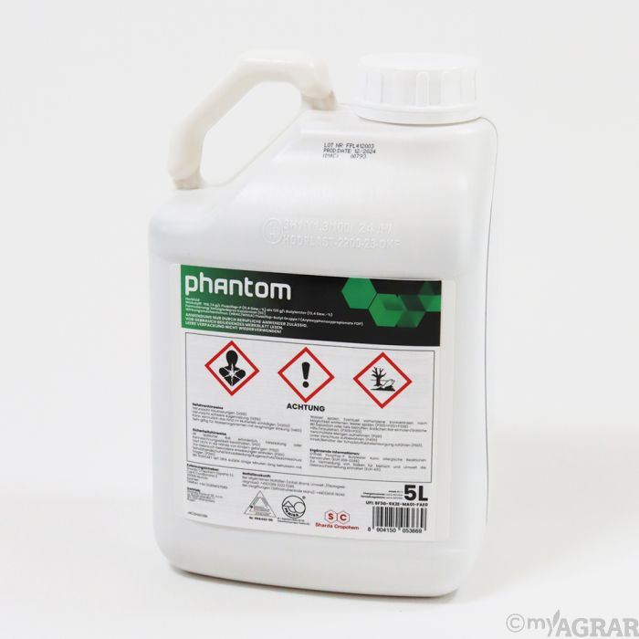 Phantom ist ein Herbizid gegen einjährige Gräser (ausgenommen Einjähriges Rispengras), Gemeine Quecke und Ausfallgetreide in Raps, Futter- und Zuckerrüben, Bohnen, Erbsen sowie verschiedener Obst- und Gemüsekulturen.