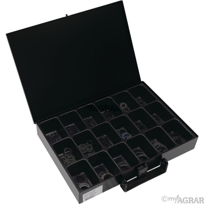 Beschreibung • DIN 471, blank • 180 Stück • sortiert • Abmessungen: 8 x 0,8 bis 34 x 1,5 • Koffer: 330 x 230 x 50 mm