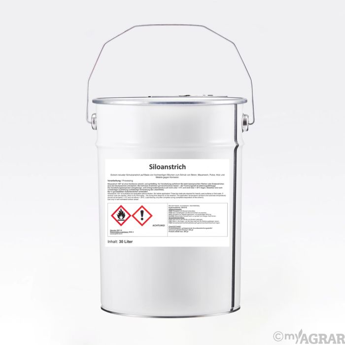 Der Silolack schwarz ist ein bituminöser, lösemittelhaltiger Schutzanstrich für landwirtschaftliche Silos, Bitumenbahnen, Eisen, Holz und Beton. Dieser Silolack ist beständig gegen die beim Silieren entstehenden Säuren und Temperaturen.