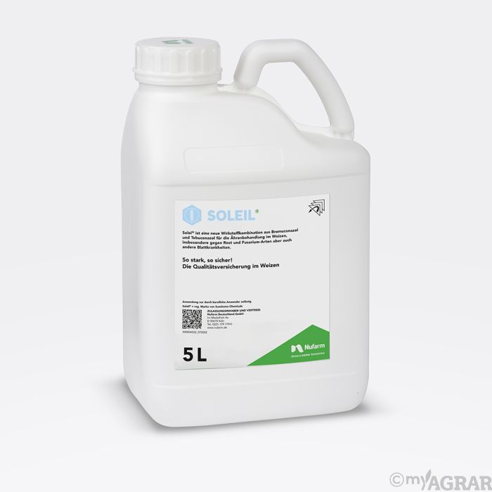 Soleil ist ein Fungizid zur Bekämpfung von Braunrost, Echten Mehltau, Fusarium-Arten und Blatt- und Spelzenbräune in Weizen. Die Wirkung ist protektiv und kurativ.