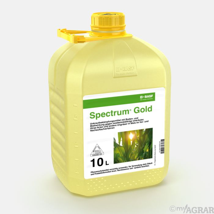 Spectrum Gold ist ein Herbizid gegen zweikeimblättrige Unkräuter, Hirse-Arten und andere Ungräser in Mais im Vor- und Nachauflaufverfahren. Durch die hauptsächliche Bodenwirkung wird das Auflaufen weiterer Hirse, Ungräser und Unkräuter wirkungsvoll verhindert.