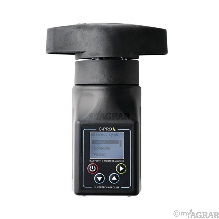 Überwachen Sie den Feuchtigkeitsgehalt ihres Getreides und vermeiden sie Verderb Eine effektive Getreidelagerung ist unerlässlich, um eine hohe Erntequalität zu gewährleisten und Pro-duktverluste zu vermeiden. Feuchtigkeitsmanagement ist der Schlüssel zur sicheren Lagerung. C-Proist eine neue Generation von Getreidefeuchtemessgeräten mit eingebautem Mahlwerk. Wir können mit Sicherheit behaupten, dass dies das technisch fortschrittlichste tragbare Getreidefeuchtemessgerät der Welt ist. Die Schlüsselfunktionen /-Vorteile sind: Überblick über den Feuchtigkeitsgehalt in Ihrem Getreide und Saatgut Benutzerfreundlich. Nur vier einfache Schritte bis Sie loslegen können App enthalten. Schnellübersicht und leichte Interpretation der Daten