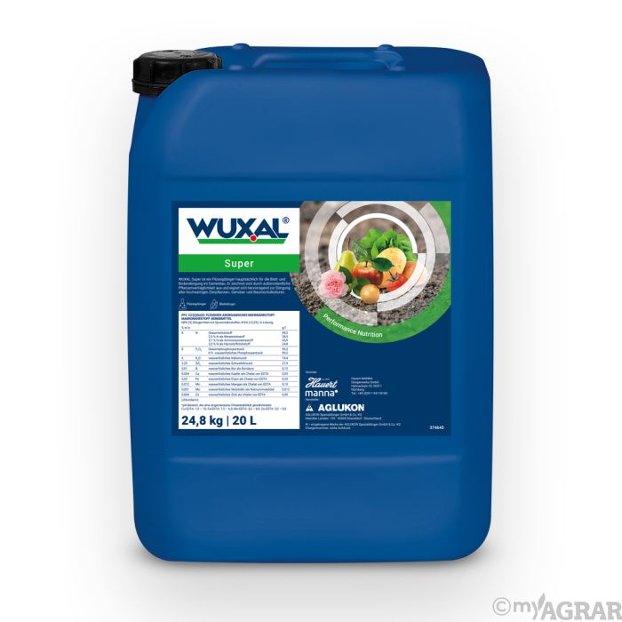 Wuxal Super ist ein Flüssigdünger für Kulturen mit einem ausgeglichenen Nährstoffbedarf. Der Dünger ist pflanzenverträglich und die Nährstoffe sind sofort für eine Aufnahme über das BLatt verfügbar. Wuxal Super steigert die Blüh-, Frucht- und Wuchsqualität.